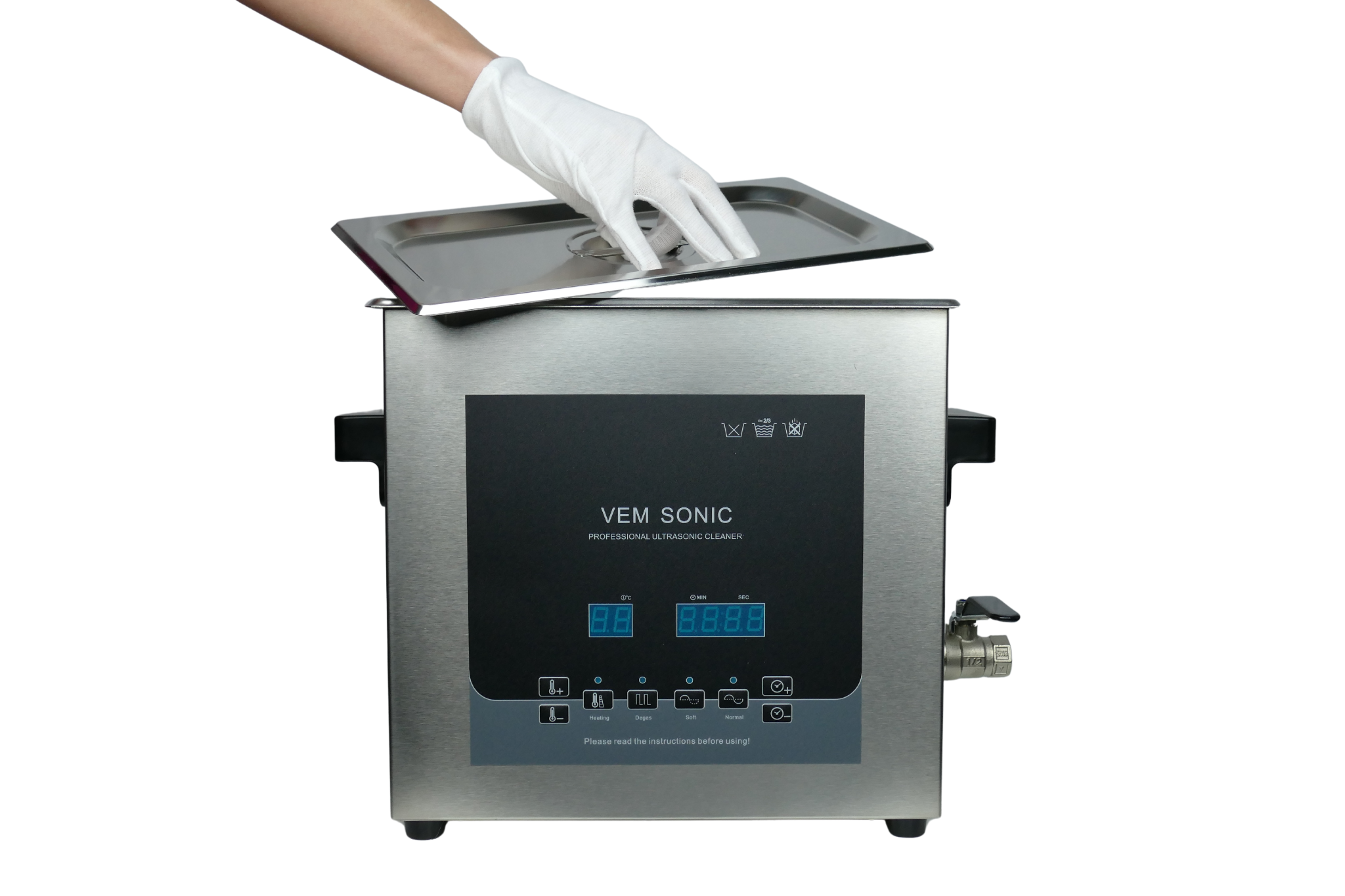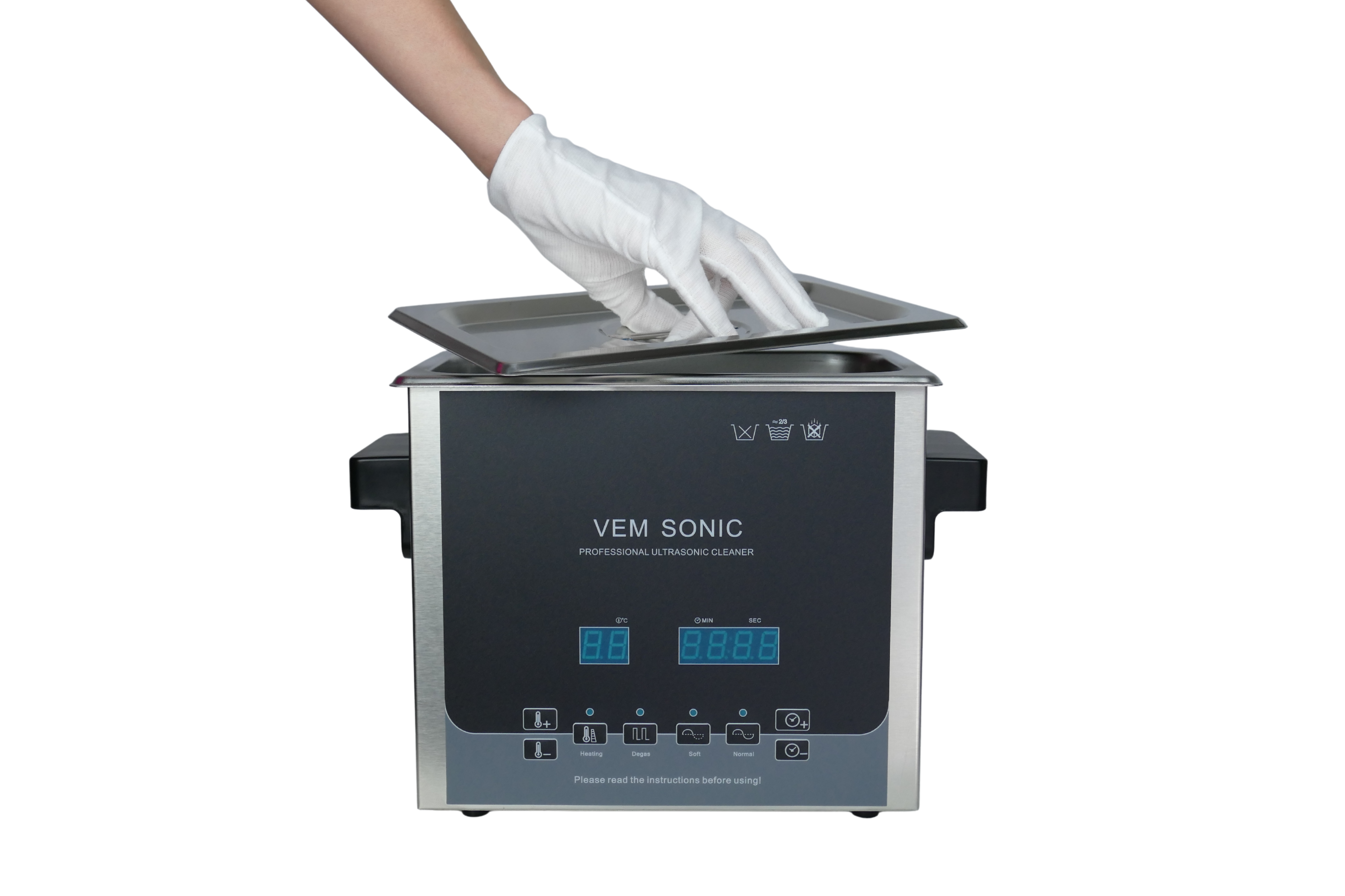 von 45-50°C. Fügen Sie ca. 15-30ml VEM ULTRA-FX zu je 1 Liter warmem Wasser. Die Reinigungsflüssigkeit sollte ausgetauscht werden, wenn die